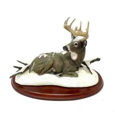 Danbury Mint Winter Stag By Bob Travers The Whitetail Deer Sculpture Collection. Sitting on Cherry Wood Base Vintage